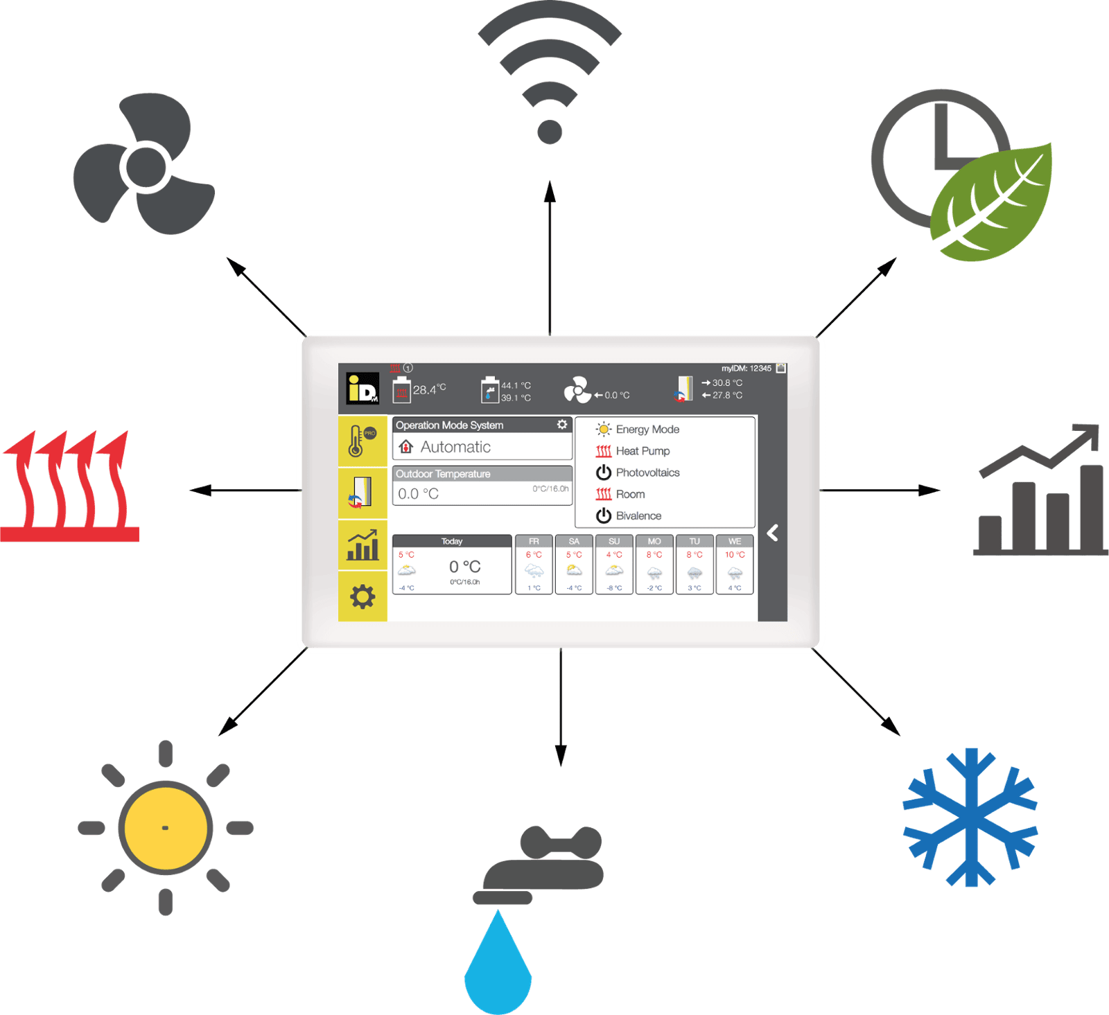 ОТКРИЙТЕ ВСИЧКИ НАШИ ФУНКЦИИ НА ИНТЕЛИГЕНТНАТА ТЕРМОПОМПА iDM В ДЕТАЙЛИИ НАПРАВЕТЕ ИНТЕЛИГЕНТЕН ИЗБОР ЗА УСТОЙЧИВО БЪДЕЩЕ. ИНТЕРЕСУВАТЕ СЕ ОТ ПОВЕЧЕ ДЕТАЙЛИ? ОТКРИЙТЕ ОЩЕ ФУНКЦИИ.