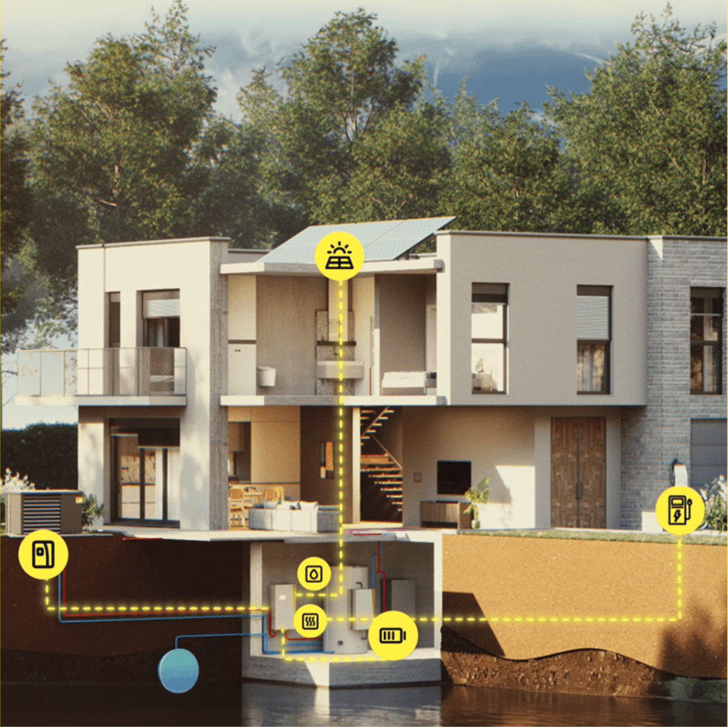 Интеграцията на фотоволтаични системи (чрез различни интерфейси) в Navigator осигурява достъп до всички релевантни данни. Това позволява оптимално управление на енергията, като се използва генерираната от фотоволтаичните панели енергия за зареждане на отоплителни и охлаждащи системи, както и за производството на гореща вода. Чрез интеграцията се постига по-добра ефективност и намаляване на енергийните разходи.