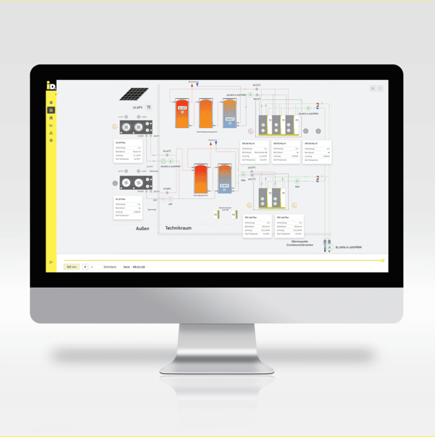 Простото слънчево управление (диференциално температурно управление) е възможно със стандартния Navigator. Чрез разширение с iDM слънчева станция (допълнително оборудване).