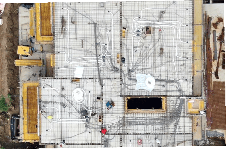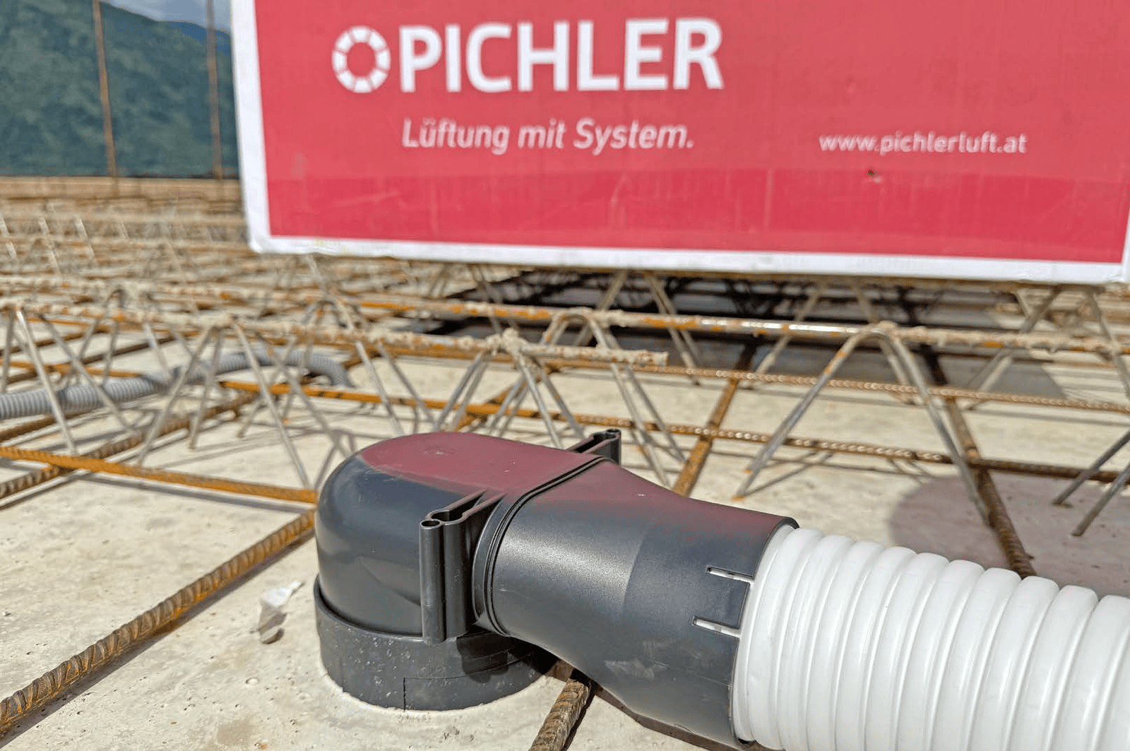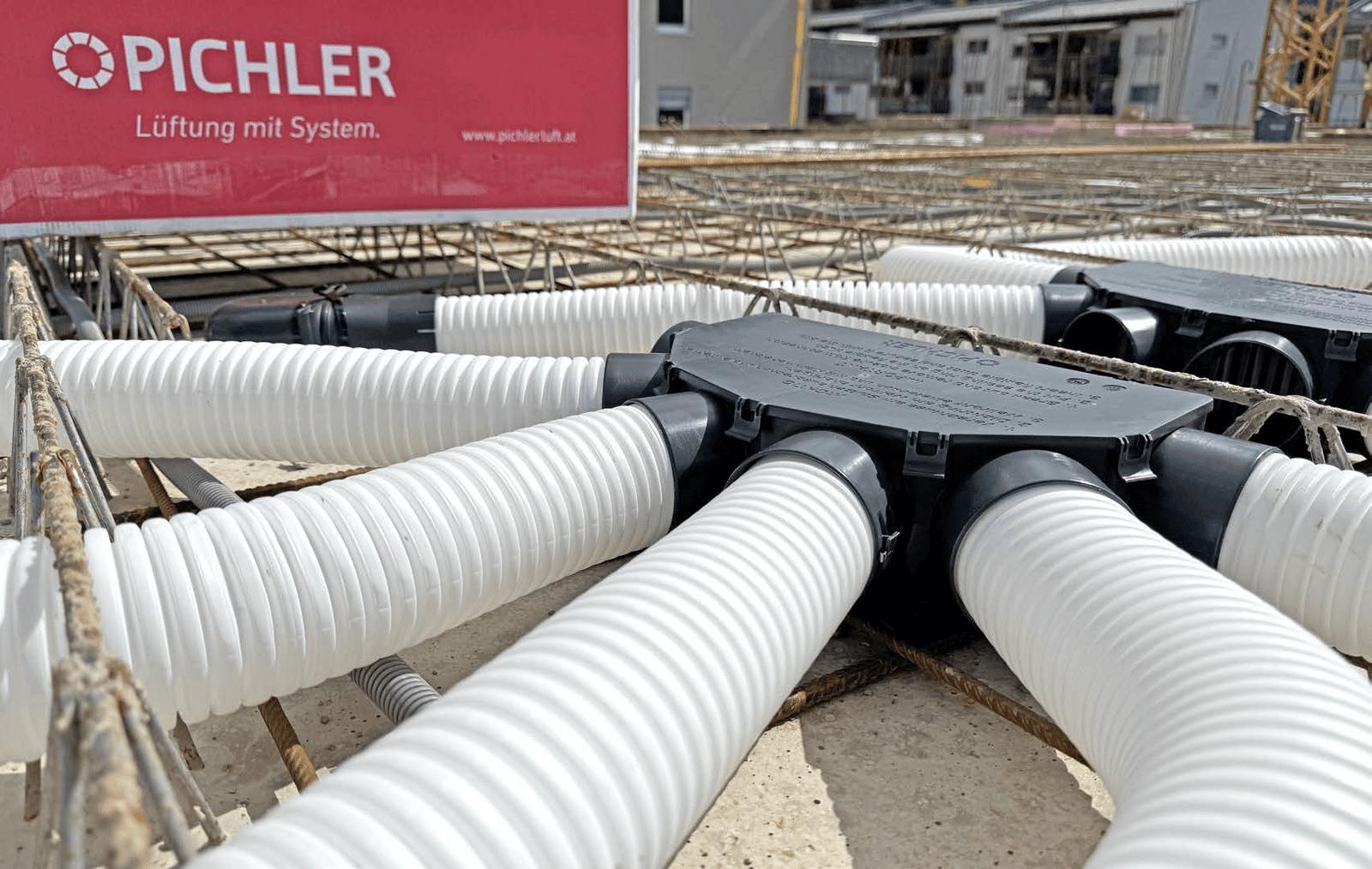 Хигиенично сертифицираната система за разпределение на въздух KomFlex® с кръгло или овално сечение се разширява с новоразработената от PICHLER пластмасова разпределителна система (KS система) с вторични отвори и кофражни пръстени, както и разпределителни кутии, която се използва в този новоизграден жилищен комплекс в Каринтия.
