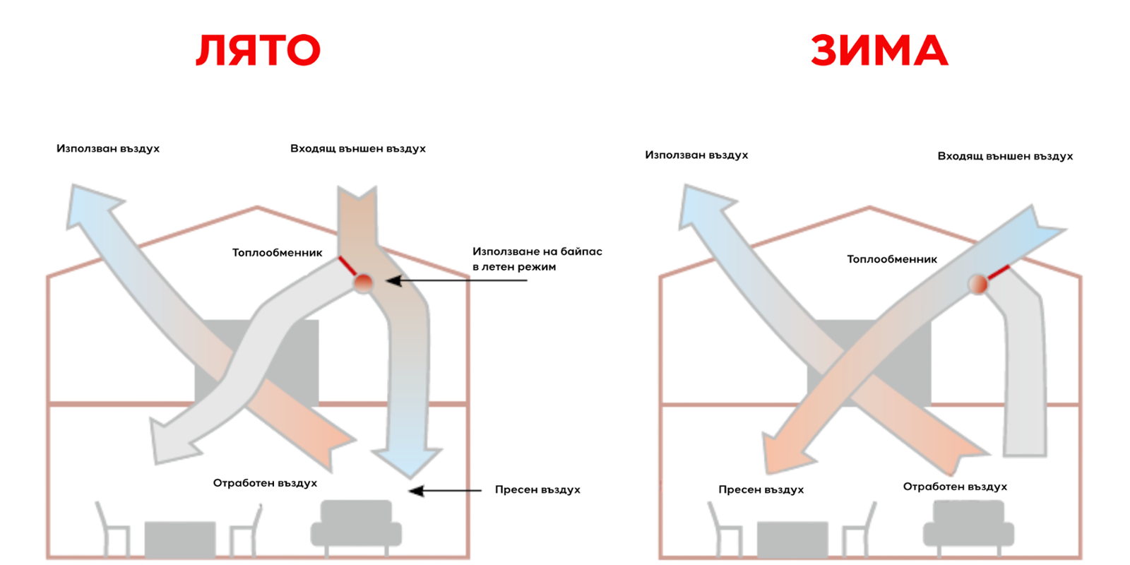 Как вентилационната система работи през лятото и зимата ?